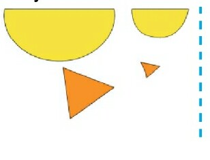 1. Potong empat buah bidang. Dua setengah lingkaran besar dan sedang. Dua segitiga besar dan kecil.